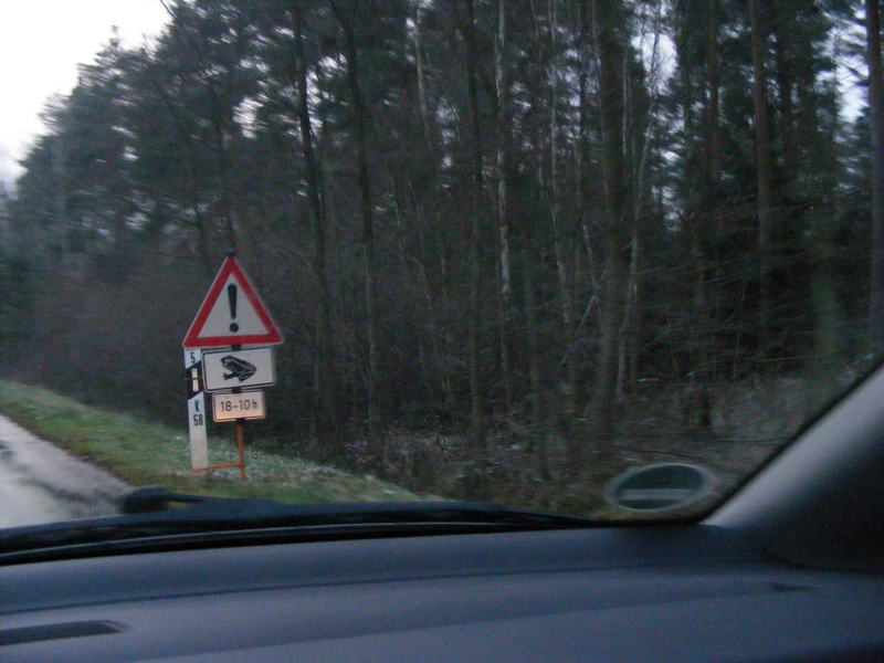 Sämtliche Bundesstraßen von Ost-Westfalen bis Sachsen-Anhalt und der Lüneburger Heide bis Kreuz Kamen Ost waren mit Warnschildern ausstaffiert. Es ging nichts mehr. Die Frösche gingen den Weg, den die Frösche gingen mussten. An sämtlichen Kreuzungen war das THW und die Bundeswehr im stetigen Einsatz, um der sich rasch wachsenden Epidemie Herr zu werden. OHNE ERFOLG. Kümmerliche Versuche -von Experten der Biologischen Bundesanstalt in Braunschweig empfohlen- waren kein Hinderniss, um der Herrschaft der Frösche Einhalt zu gewähren! |